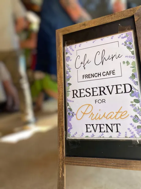 Please be advised that Café Chérie is a walk-in café and does NOT accept reservations smaller than 6 people. If you have a group smaller than 6 people, you and your guests will be welcomed as a walk-in.