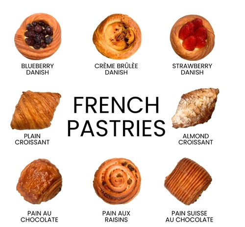 Our French pastries are baked fresh each morning. From buttery croissants to our indulgent danishes, every pastry is crafted by hand to bring you the authentic taste of France. Light, flaky, and irresistibly delicious.
